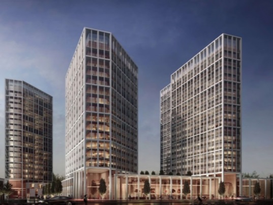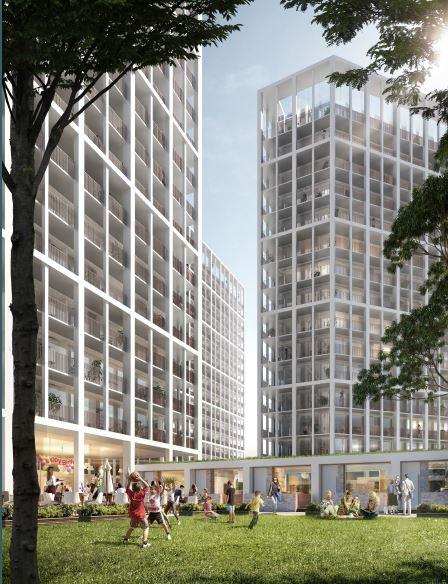Comprising of 1,308 apartments across five blocks varying between 18 and 21 storeys in height. There will be 468 one-bed apartments, 468 two-beds, 234 studios, 78 three-beds and 60 town houses. As well as residential accommodation, the development will also provide 55,000 sq ft of commercial space at ground floor and mezzanine level, spread across all five blocks, and 682 parking spaces.