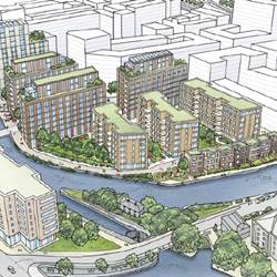 The development consists of a x3 floors of commercial space, x350 new build apartments spanning an array of buildings from x4 to 11 storeys.